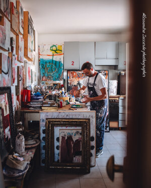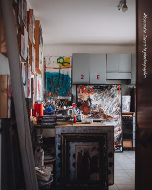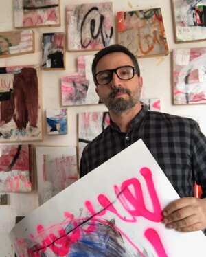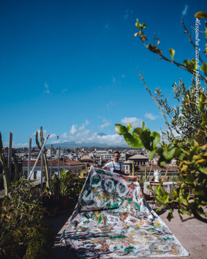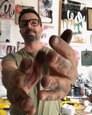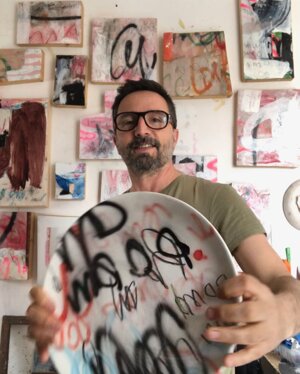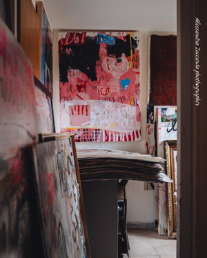 'Visitare il suo studio, che è anche la sua abitazione, significa addentrarsi nelle sue stanze, e godere di tutti i suoi lavori alle pareti o accatastati in colonne,guardare le sue meravigliose sculture poliedriche, entrare nel suo mondo in maniera intima e intensa. E’ proprio da questa esperienza che è nato il titolo della mostra “In my rooms” che il gallerista Francesco Rovella e Giuliano Cardella immaginano non solo come esplorazione nelle stanze dello studio, ma anche come ingresso nelle stanze segrete della mente dell’artista, un' incursione nel suo incredibile mondo di sovrapposizioni, colori,segni,graffi e parole di un alfabeto sconosciuto.